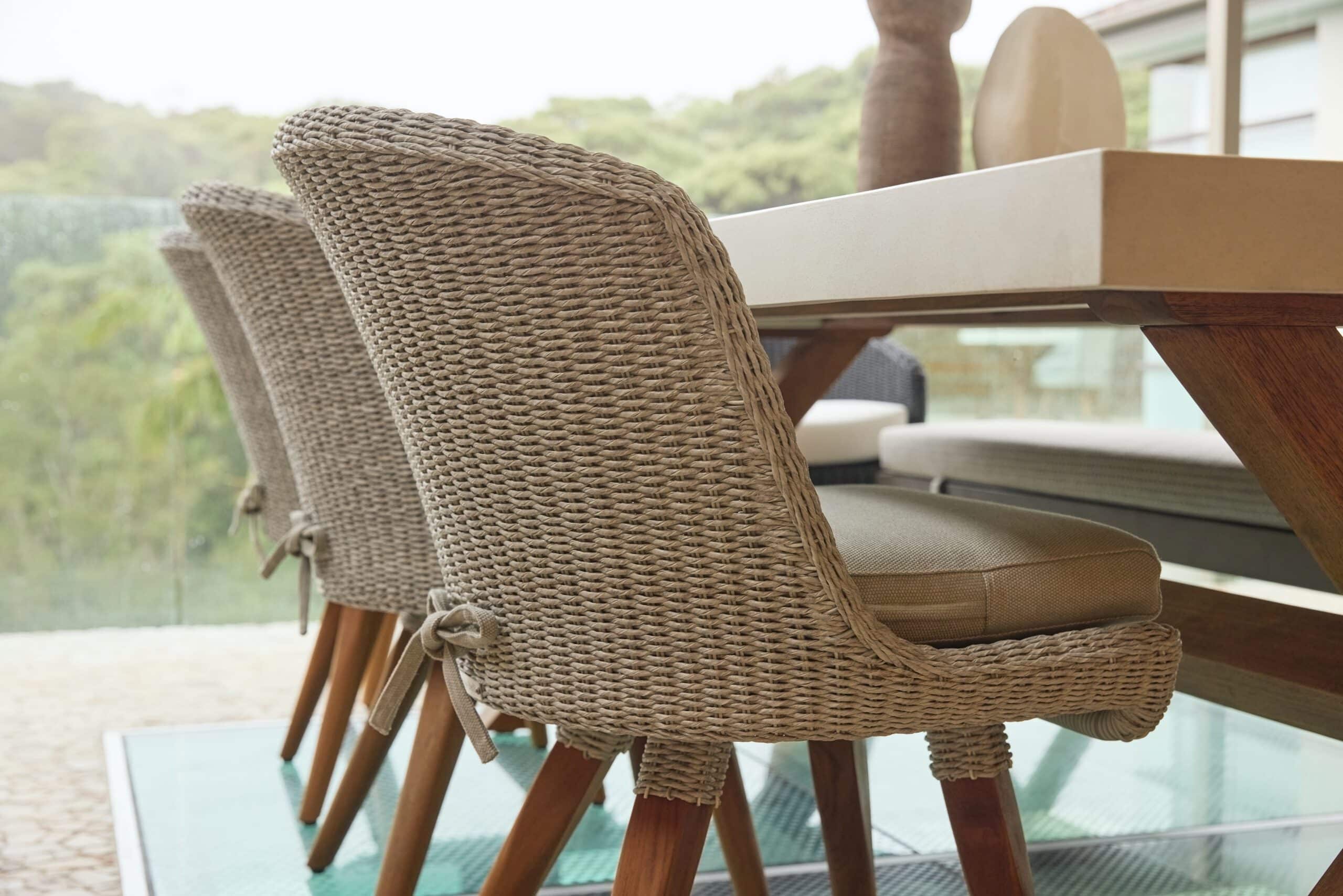 Dimensions: 54cm x 64cm x 82cm Wicker: Silver Grey Thin Fabric: Zori matcha Teak: A Grade Teak, Light Teak
